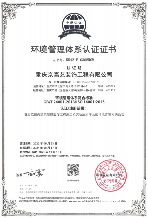 環(huán)境管理體系認(rèn)證證書
