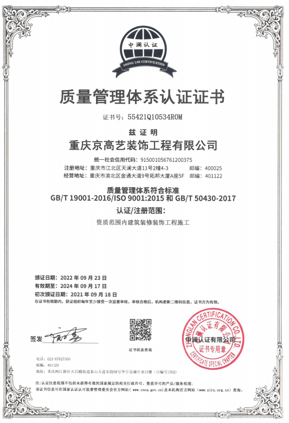 質(zhì)量管理體系認(rèn)證證書